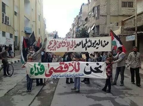 Demonstations over the closure of the al-Aqsa compound have reached as far as the Yarmouk Palestinian refugee camp in Syria.